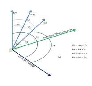 A esta resultante se le denomina rumbo efectivo (o eficaz), y a esa velocidad: velocidad efectiva la cual no es marcada por la corredera ya que esta marca Vm (velocidad máquinas).